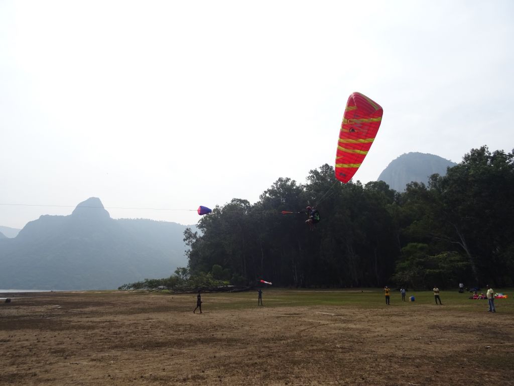 PAI successfully organised a Winch Paragliding project over the Thirumoorthy Dam using a speed boat for mounting the winch. This was the first such attempt in India. The effort was spearheaded by G. Surendhran our new VP South who very kindly lent his Winch mounted on a boat specially fitted for this event. Surrounded on two sides by densely forested mountains and flatlands on the opposite sides with ample space along the shores of the lake for both take off and landing for multiple wind directions, this site provides one of the most perfect settings yet for SIV and Acro flying in the country. Several pilots joined in and flew multiple flights over 5 days including a few tandem flights. Pilots got sufficient height to perform full stalls, helicos and othe racrobatic manouvers safely over water with a jetski in readiness to retrieve any pilot landing in the water. More action is being planned at this site including SIV courses (to be conducted in collaboration with SIV instructors) and Acro flying.